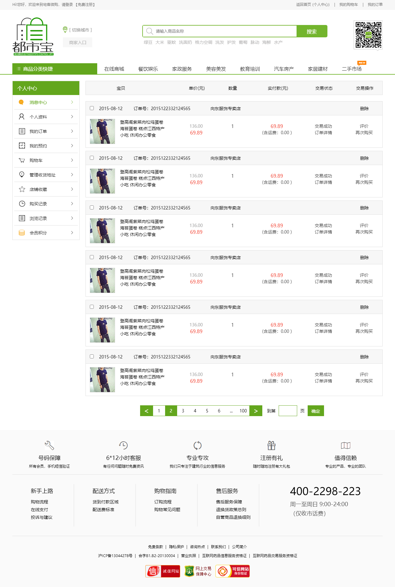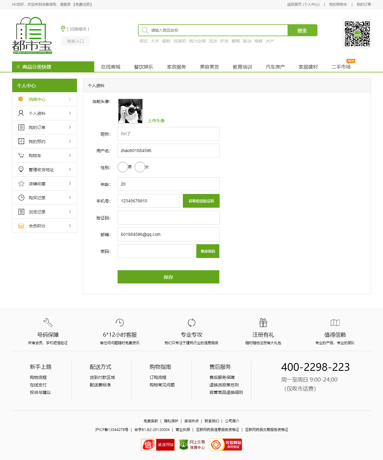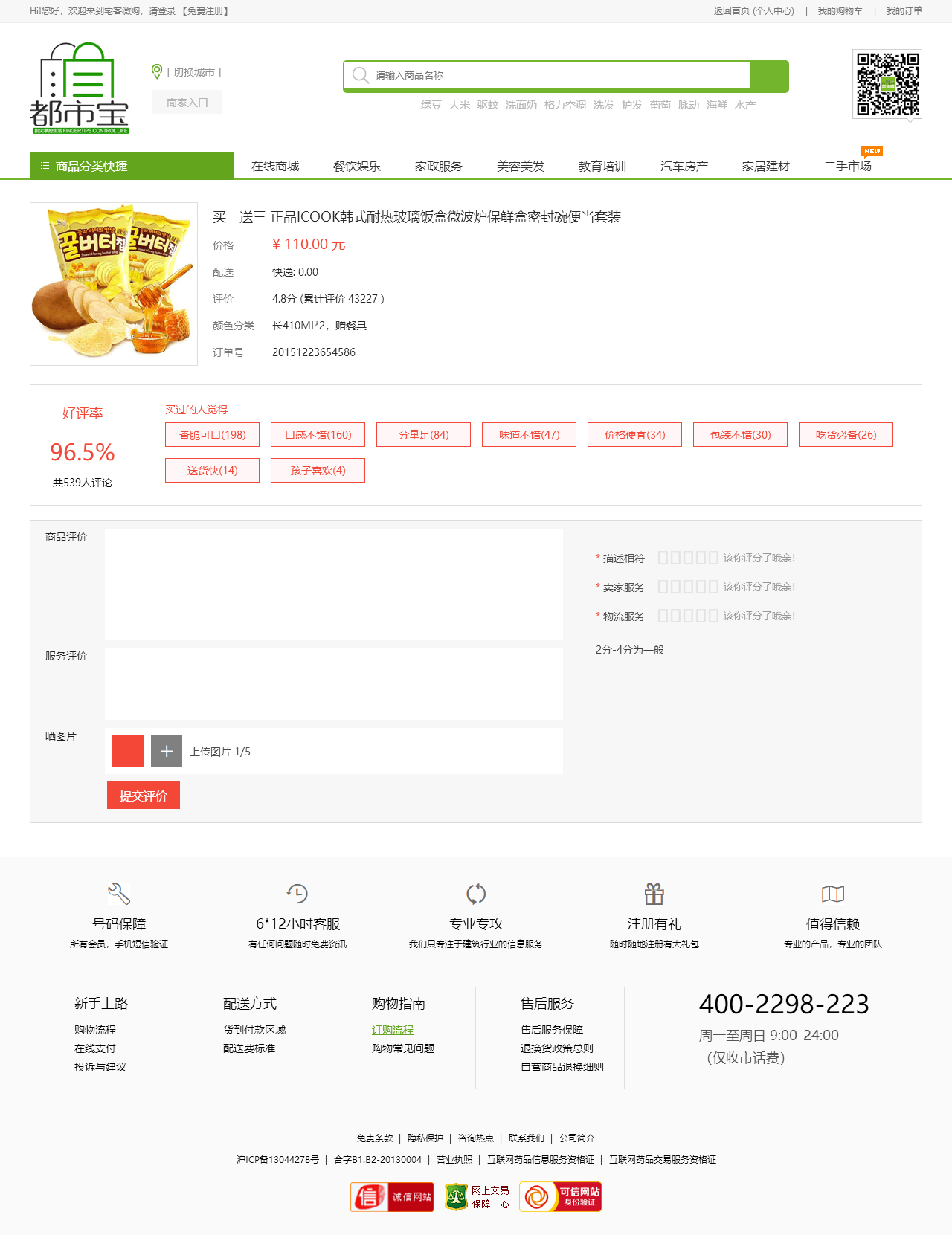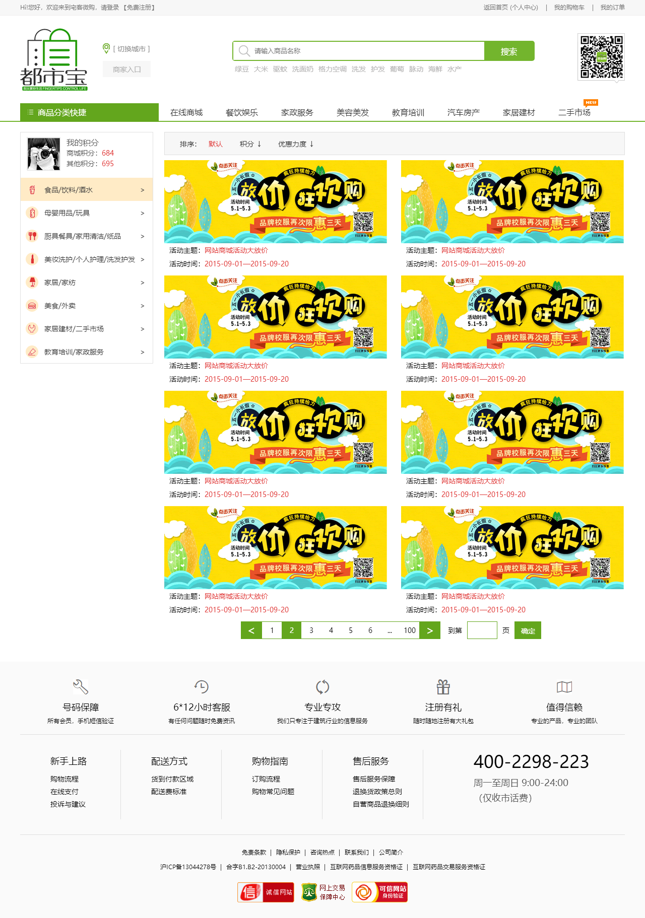 绿色的生活服务平台购物商城模板html源码(购物车数字可变,金额不变)