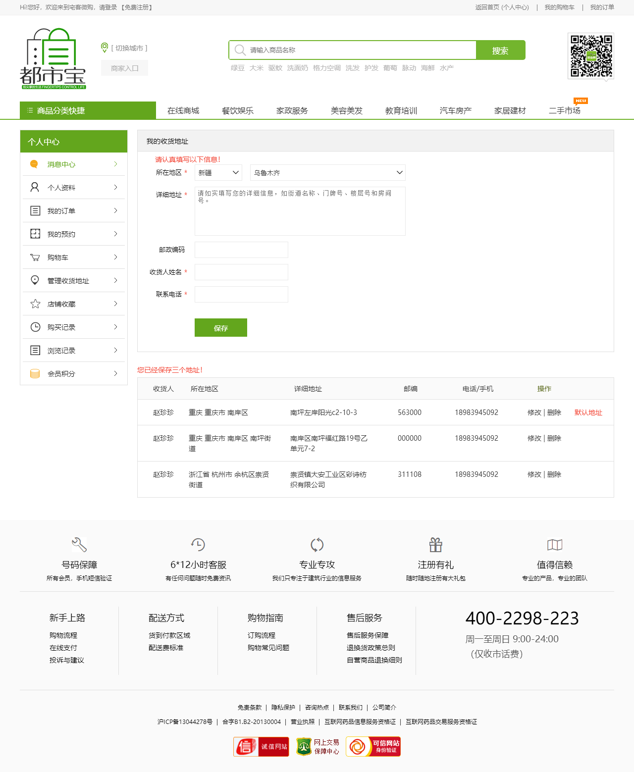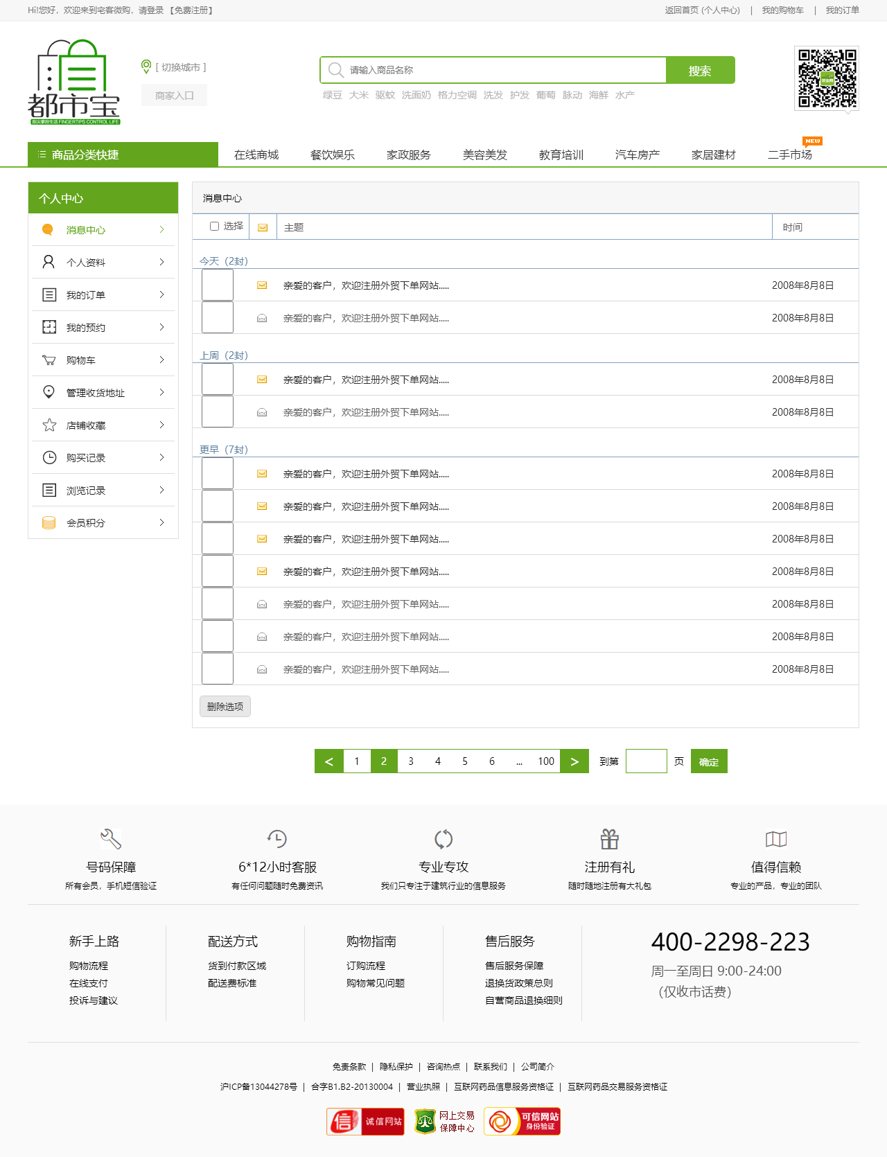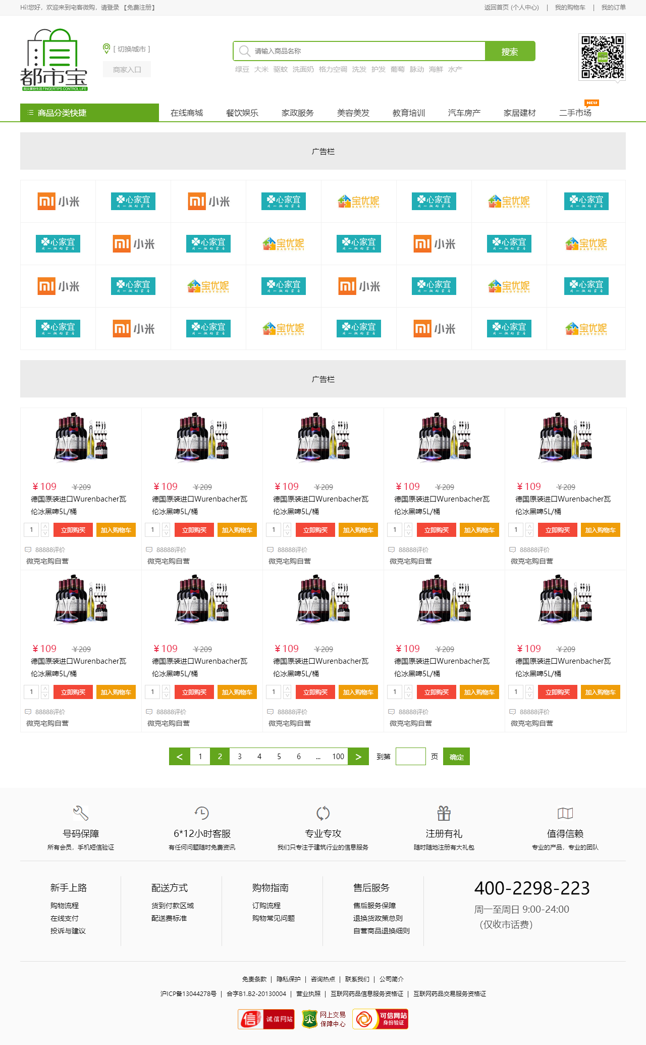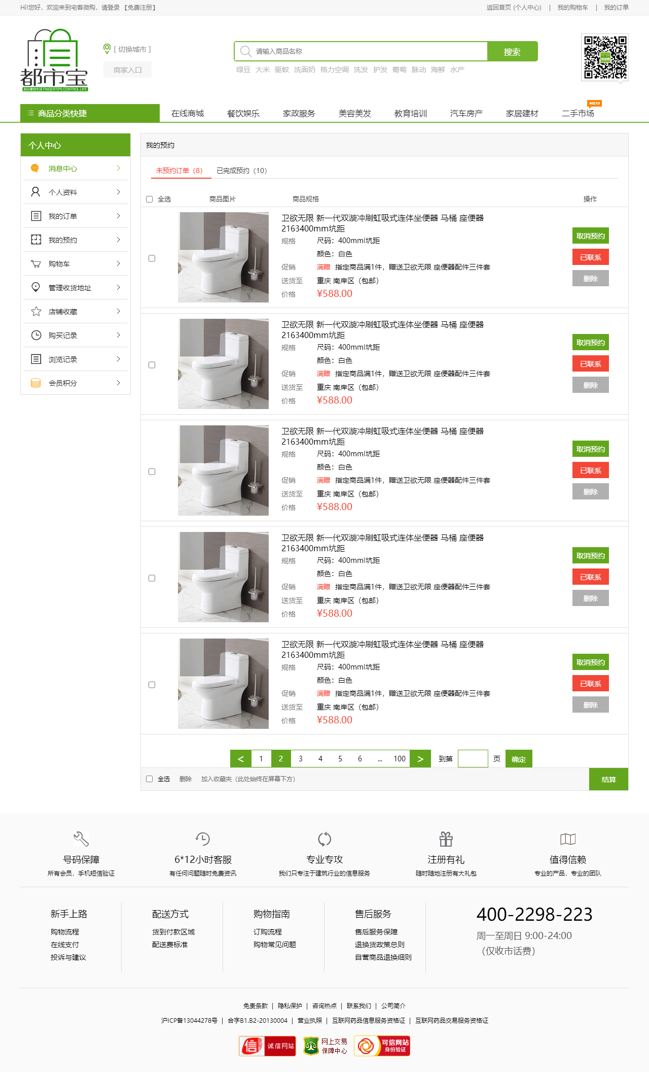 绿色的生活服务平台购物商城模板html源码(购物车数字可变,金额不变)