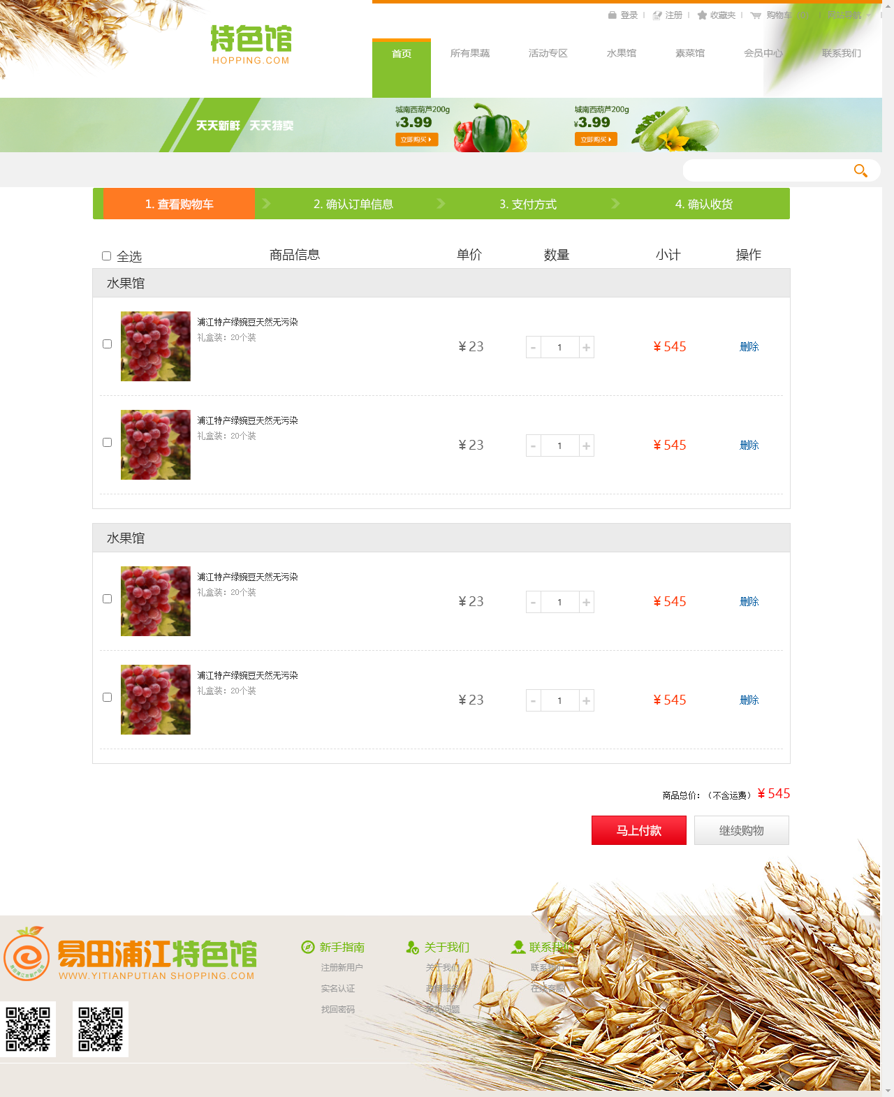 绿色宽屏的网上蔬菜水果商城html购物模板